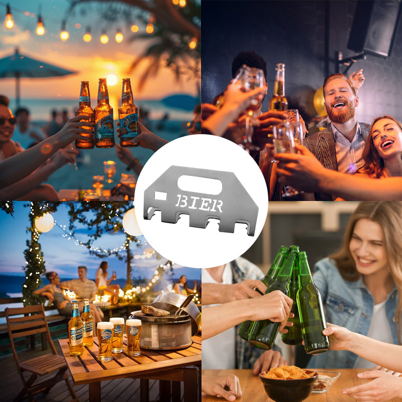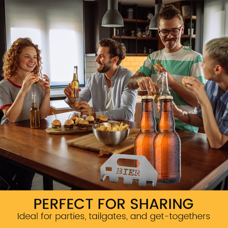 Tired of opening beers one by one when the good times are flowing? Our innovative Quad Beer Opener & Carrier is here to revolutionize your beverage experience! Crafted from durable stainless steel (or other sturdy material), this ingenious tool lets you crack open up to four bottles simultaneously with a swift, satisfying motion.