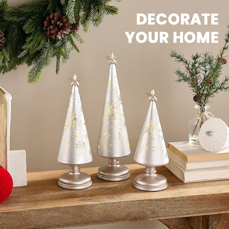 The exquisite resin star is located at the top of the tree, with a satin silver-toned round base, adding nobility and elegance to the entire decoration.