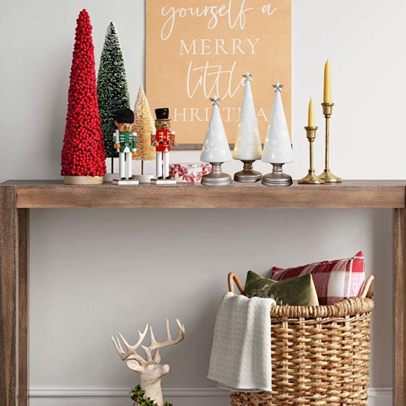 Want to add a touch of dreamy atmosphere to Christmas? This Christmas glowing tree is not only unique in shape, but also has an exquisite etched snowflake design, which makes each light shine with endless holiday warmth, making it a great choice for your home decoration.