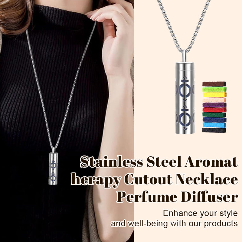 Elevate your style and well-being with our Stainless Steel Aromatherapy Cutout Necklace Perfume Diffuser! This stunning piece of jewelry is more than just an accessory – it's a personal aromatherapy diffuser designed to help you stay calm and centered throughout your day. 💖