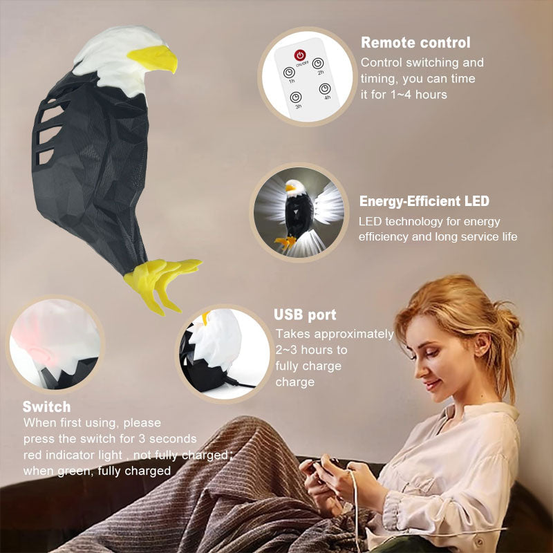 ⭐️⭐️⭐️⭐️⭐️ “I’m amazed by the dramatic lighting effect! The eagle with outstretched wings looks incredible when the light is on. Highly recommend for any decor.”