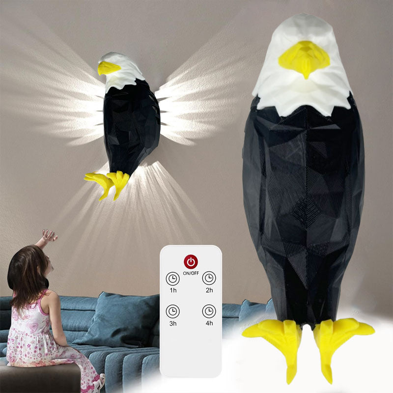 Let the majestic silhouette of an eagle soar into your home with the Eagle Wall Mounted Night Light. This unique lighting fixture adds a touch of elegance to any room while providing a soft, ambient glow that's perfect for nighttime relaxation. Whether you’re brightening up a hallway, bedroom, or living room, this night light effortlessly blends style and functionality.