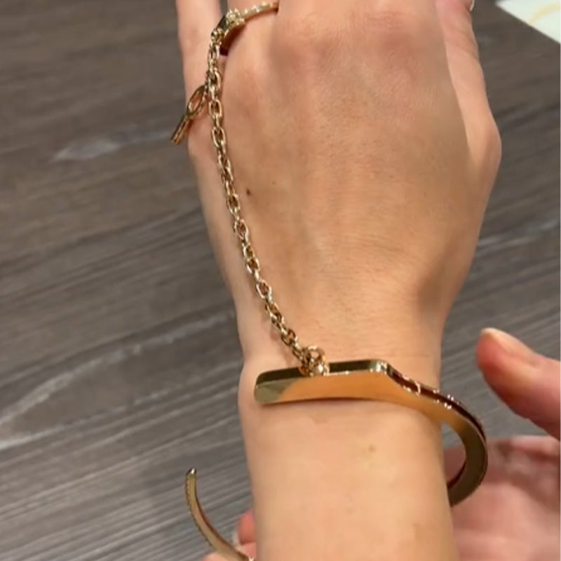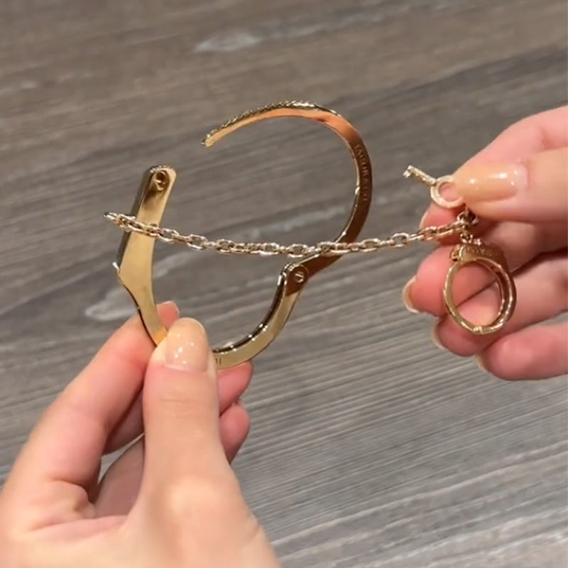 Embrace the symbolism of eternal connection. The handcuff motif adds a modern twist to the traditional bracelet, representing unbreakable bonds between two hearts.