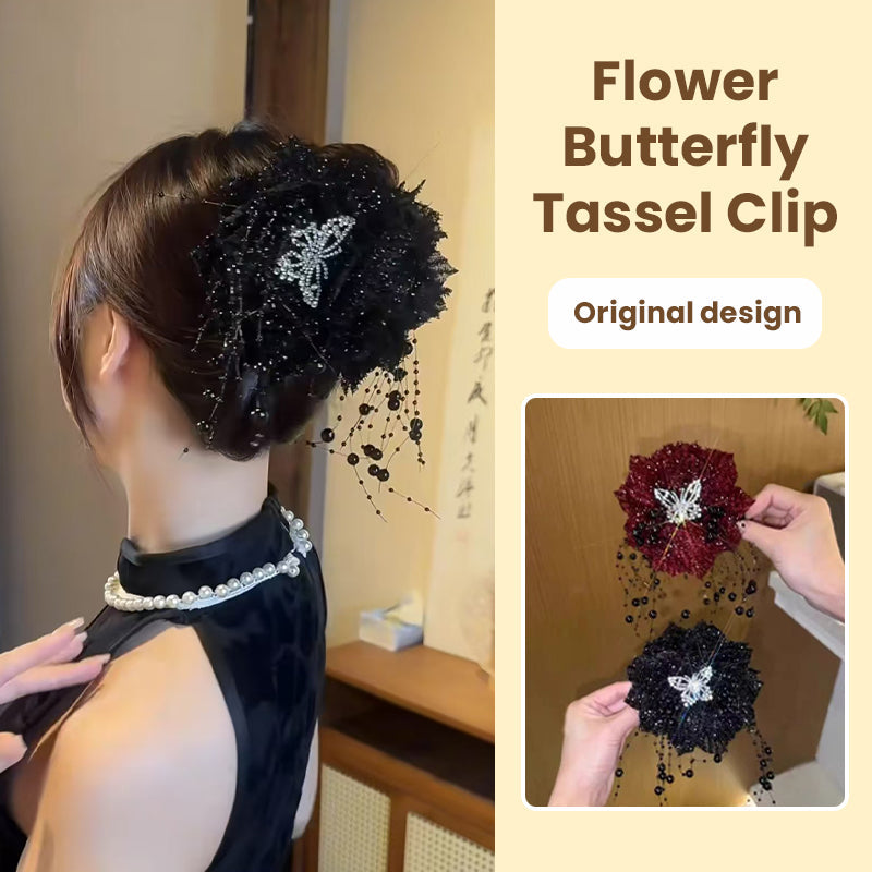Flower Butterfly Tassel Hair Clip 🦋✨