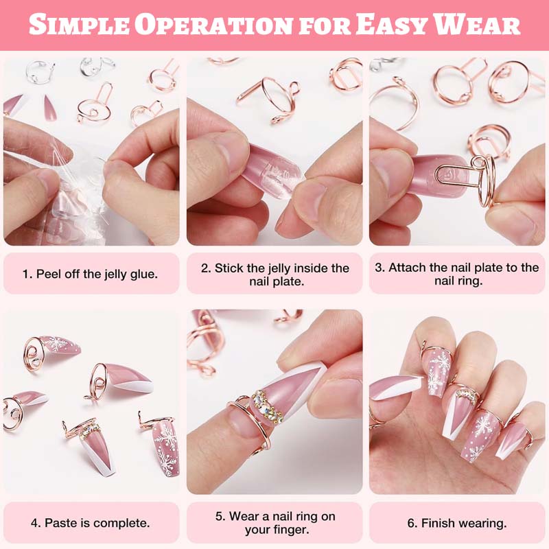 Peel Film → Apply Jelly Glue → Fix Nail Tip → Attach Ring → Adjust → Done!