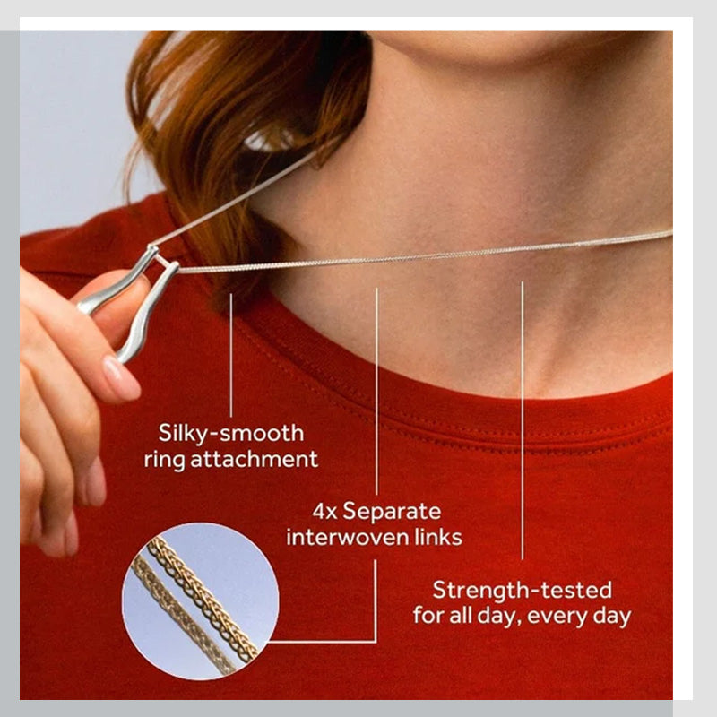 This necklace isn't just for looks! It doubles as a functional ring holder, keeping your rings safe and stylishly showcased. Take off your ring while washing your hands or doing chores—simply hang it on the pendant to avoid losing or damaging it.