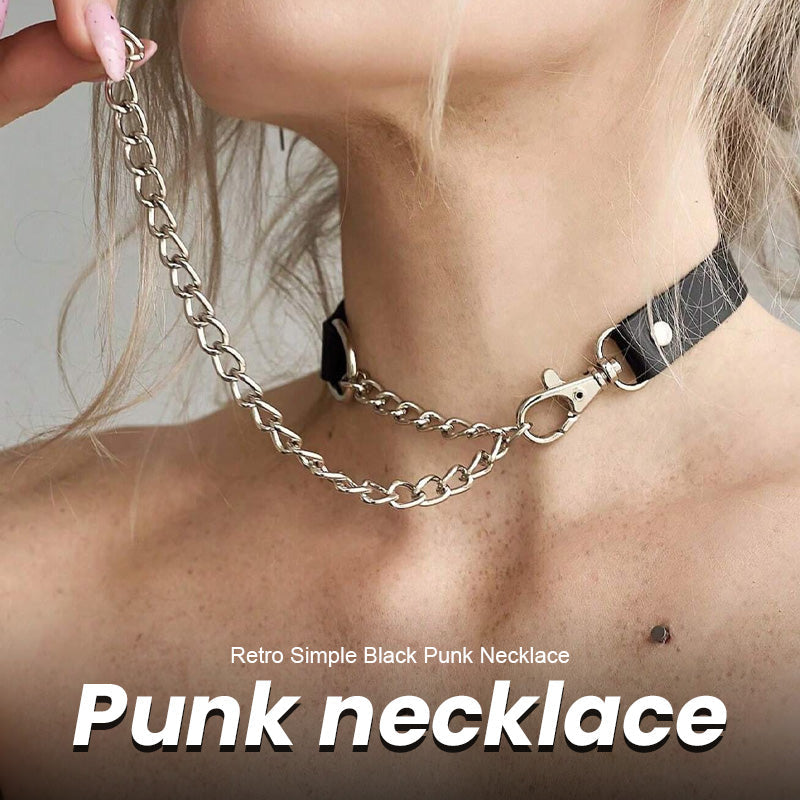 - Elevate your accessory game with our Retro Simple Black Punk Necklace. This striking piece combines retro vibes with a modern punk aesthetic, perfect for anyone looking to express their unique style. Whether you’re dressing up for a night out or adding flair to your everyday look, this necklace makes a bold statement.