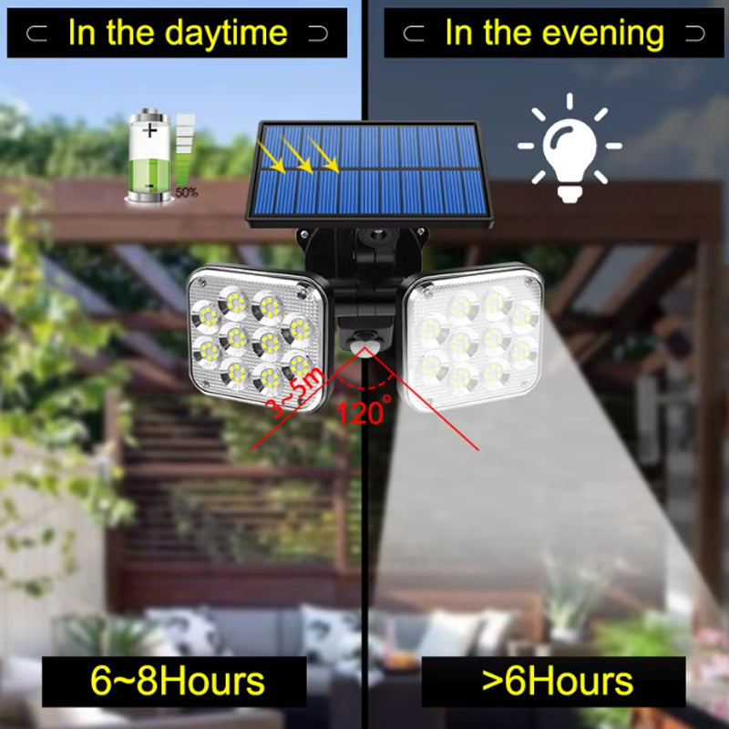 This LED solar light features a double-headed design that delivers light exactly where you need it. Each head is fully adjustable, allowing you to rotate and position them independently. So whether you're brightening up a garden path or spotlighting a cozy outdoor seating area, this versatile light does it all. You’ll wonder how you ever lived without it!