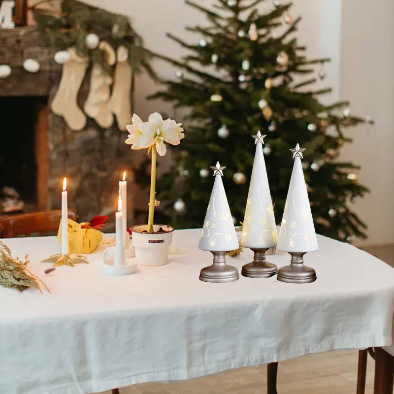 Want to add a touch of dreamy atmosphere to Christmas? This Christmas glowing tree is not only unique in shape, but also has an exquisite etched snowflake design, which makes each light shine with endless holiday warmth, making it a great choice for your home decoration.